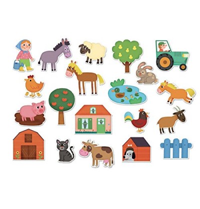 Scatola in legno con 20 magneti dedicati agli animali della fattoria. Indicati a partire dai 2 anni di età.